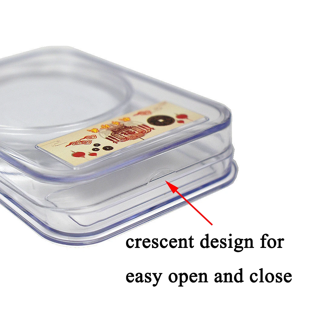 Coin holder is 51mm diameter, made from PS plastic, which is clear transparent and strong tightness...