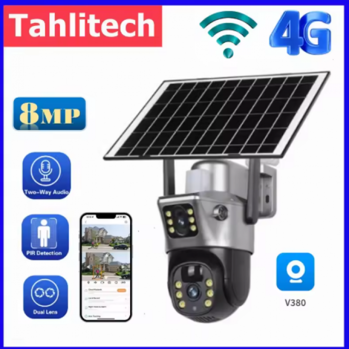 Tags: Buy the 4K 8MP Dual Lens PTZ Solar Camera with AI Human Detection, Full HD Night Vision, Two-Way Audio & IP66 waterproof rating. Ideal for outdoor wireless security, V380PRO, T8B, 8MP, 10x, Magnification, Dual, lens, 4G, SIM, card, CCTV, Solar, Outdoor, Wireless, Waterproof, Solar, Camera, solar camera, PTZ camera, 4K security camera, 8MP surveillance, V380Pro, waterproof camera, dual lens, WiFi CCTV, 4G SIM security cam, smart detection, motion sensor, night vision,