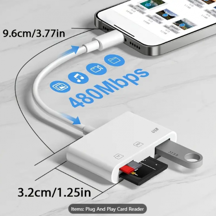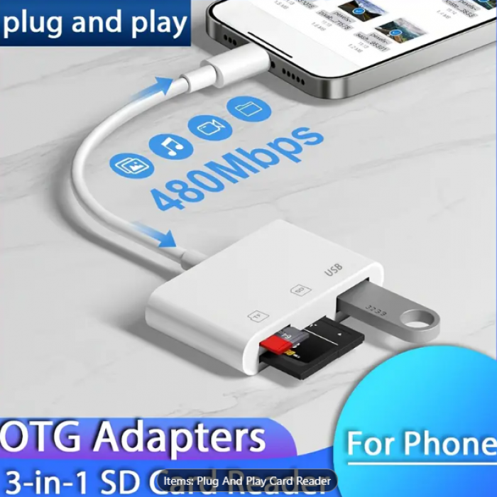 This 3-in-1 SD Card Reader is a compact and versatile accessory designed to simplify your data transfer needs. Its multi-functional design and plug-and-play capability make it an essential tool for photographers, tech enthusiasts, and everyday users.