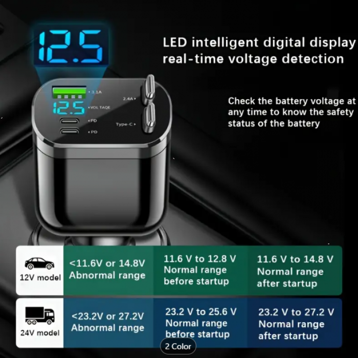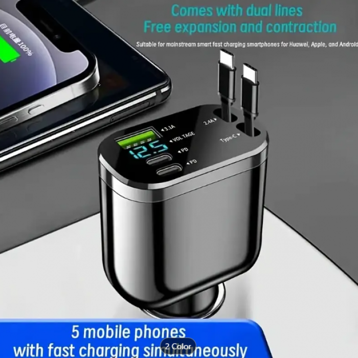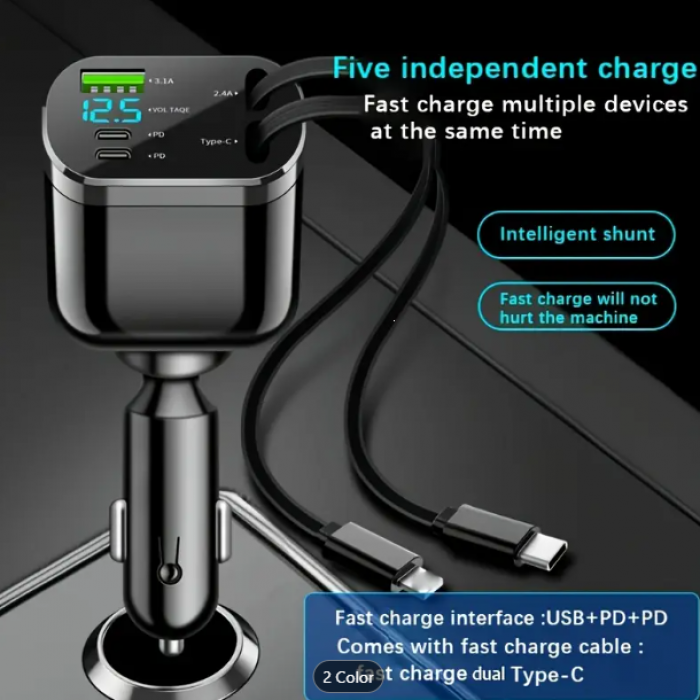 Tags: 5-in-1, Car, Charger, Adapter, Dual, USB, PD, Fast, Charging, Extendable, Cable, Voltage, Display, Universal, Compatibility, Female, Male, Connector,