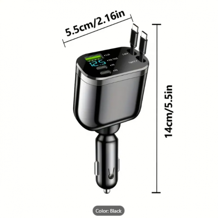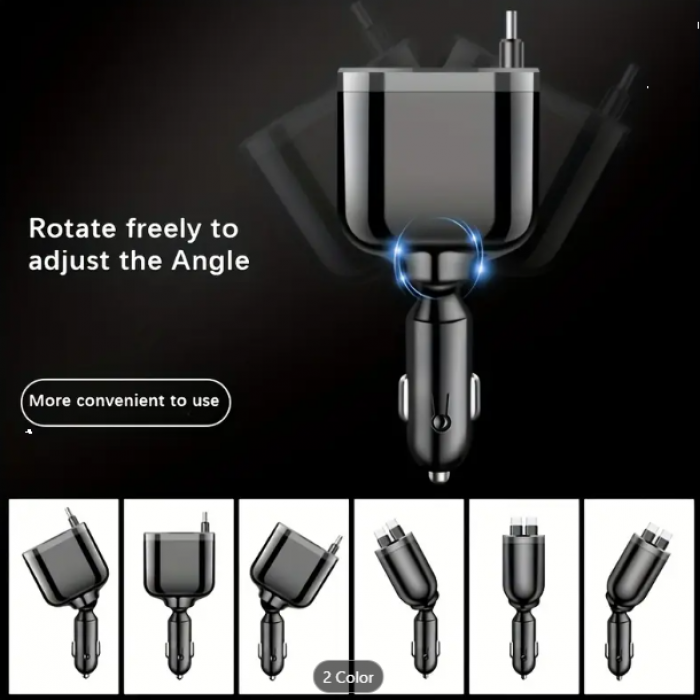 The 5-in-1 Car Charger Adapter combines functionality and safety in a sleek design. With fast-charging technology, a user-friendly extendable cable, and advanced voltage monitoring, this adapter is a must-have for anyone looking to stay connected and powered up while on the road.