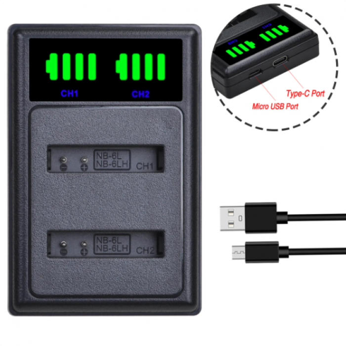 NB-6L Charger – USB / Type-C Dual Input – For Canon PowerShot & IXUS Cameras - 01115