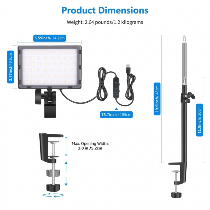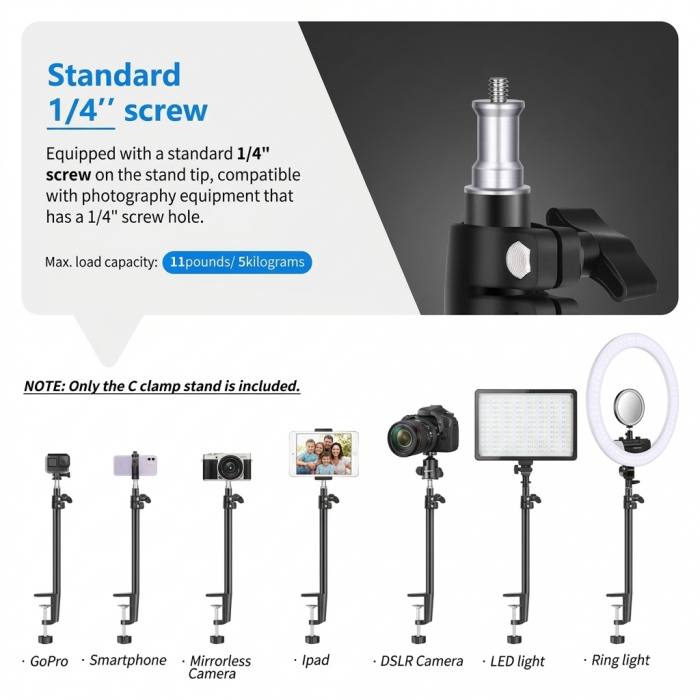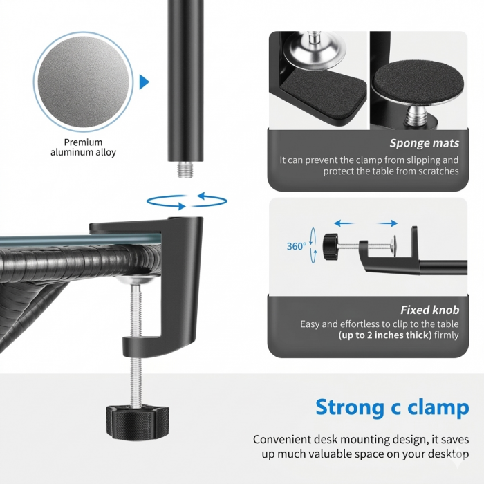Each light features a 180° adjustable ball head and multiple mounting positions, allowing you to fine-tune your lighting angles easily. The C-clamp desk stands provide a secure and space-saving mounting solution, with adjustable height for optimal positioning.