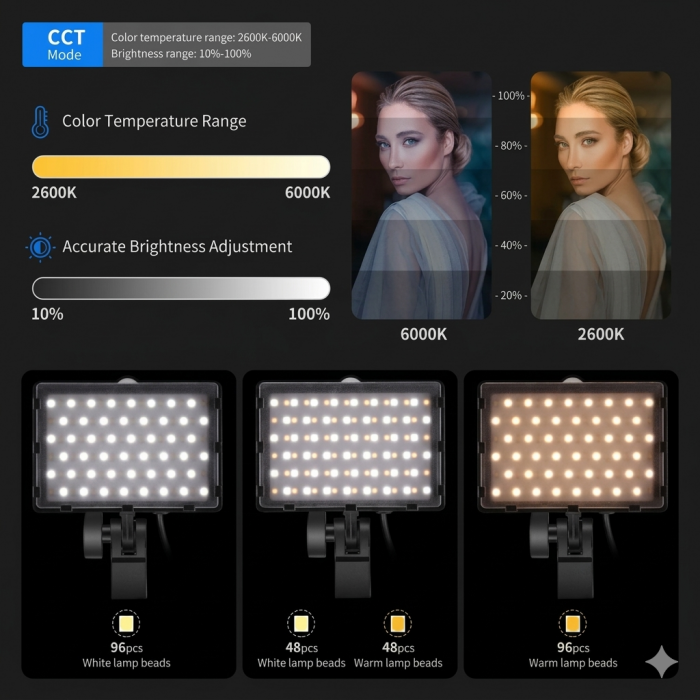 Bi-color mode (2600K–6000K) + RGB lighting mode
