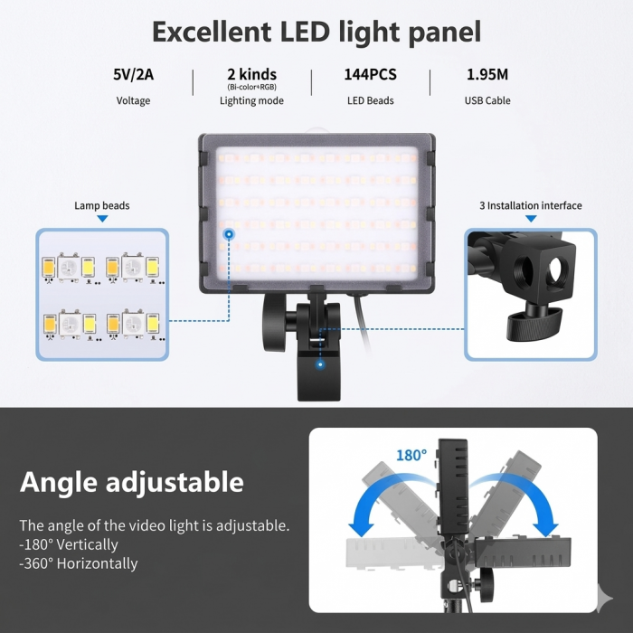 The Neewer 2x Desk Mount RGB LED Light Kit with C-Clamp Stand is a versatile and modern lighting solution designed for content creators, streamers, and professionals. With 144 LED beads per light (bi-color + RGB), this kit offers both adjustable white lighting (2600K–6000K) and vibrant RGB color modes, giving you full creative control over your lighting setup.