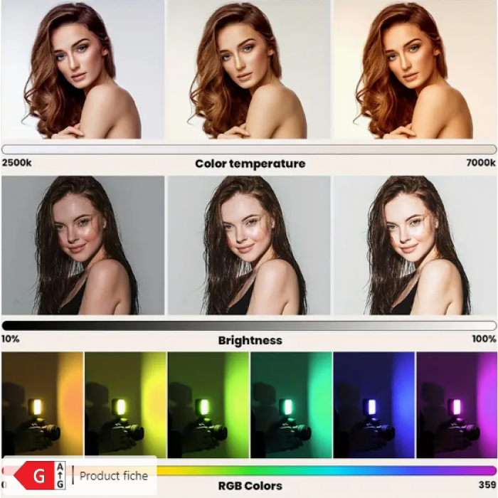 Portable RGB Video Soft Light is a versatile and high-quality lighting solution designed for creative professionals and content creators. This LED camera light offers 360° full-color RGB spectrum and adjustable color temperatures ranging from 2500K to 7000K, making it perfect for creating custom lighting effects for live shooting, vlogs, photography, video conferencing, and live broadcasts.