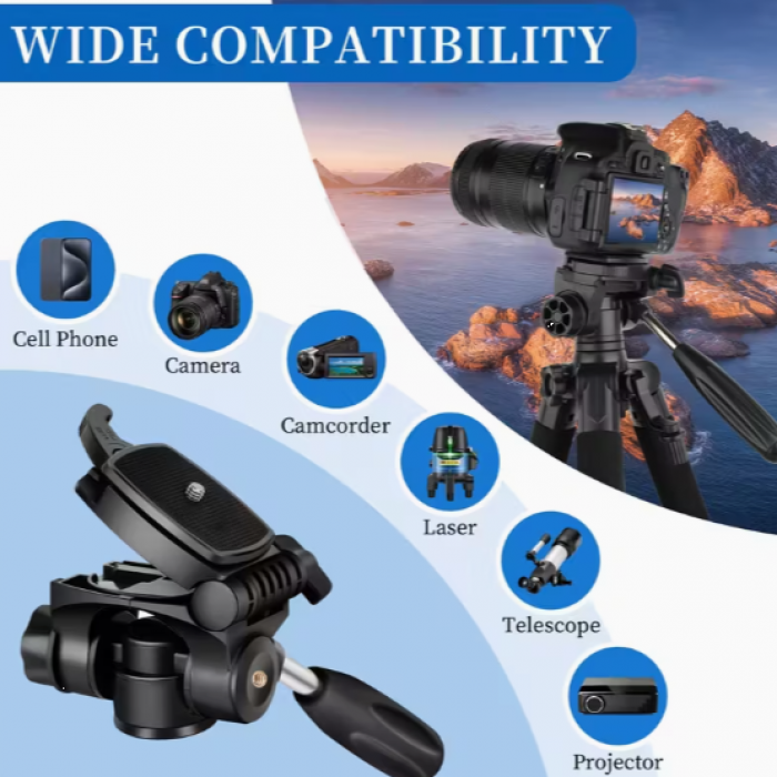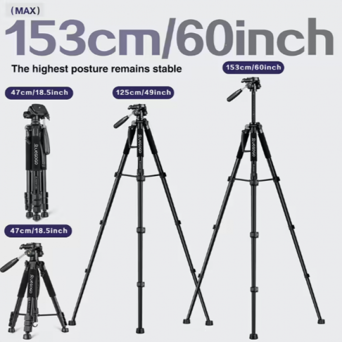 The UEGOGO Aluminum Tripod is a versatile and durable photography and video stand designed for cameras and smartphones. With a maximum height of 60 inches and a 360-degree rotating ball head, it allows precise positioning for shooting photos, recording videos, live streaming, and projections.